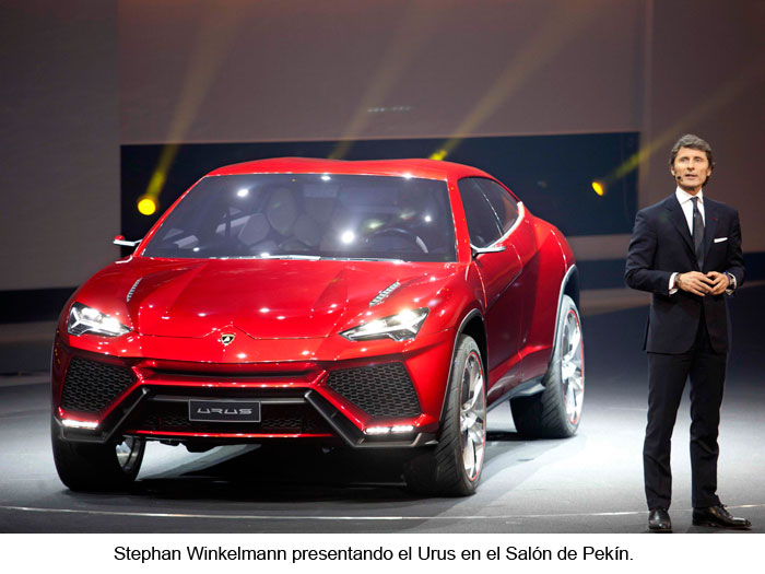 “El segmento del SUV de lujo está teniendo un éxito mundial y promete un crecimiento fuerte y sostenido; un SUV lujoso y potente equipado para cumplir todas las exigencias de la movilidad cotidiana, es el modo más emocional de conducir un vehículo de cuatro puertas a la vez que disfrutar de una refinada y divertida conducción. El SUV representa libertad y emoción”. Cita textual del parlamento que Stephan Winkelmann, Presidente y Consejero-Delegado de Lamborghini, pronunció en la presentación del concept Urus, en el recién inaugurado Salón del Automóvil de Pekín.