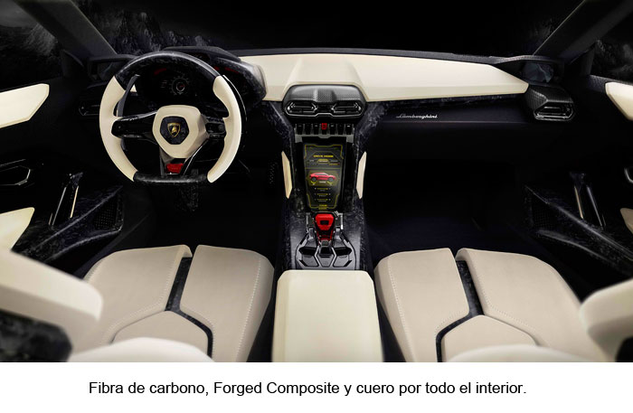Ya desde hace tiempo, y especialmente con el Aventador (y su versión J), la firma italiana trabaja muy a fondo con elementos de fibra de carbono, y esa variante especial de la misma denominada Forged Composite, con propiedades elásticas, que está presente en la práctica totalidad del interior del Urus, empezando por el túnel central y los asientos; ambos componentes tapizados luego en cuero, sin apenas acolchado intermedio. Es muy posible que el Grupo VAG esté utilizando a Lamborghini como punta de lanza para investigar la validez y viabilidad de nuevos materiales, sin comprometer en dicha aventura el prestigio de sus marcas más tradicionales (Audi o Bentley).
