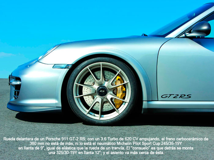 Una variación similar, y en idéntico sentido, se fue apreciando en el neumático radial a medida que bajaba en altura de perfil y paralelamente ganaba en anchura de sección, para mantener la misma capacidad de carga. Lo cual conllevaba otros dos factores negativos de cara a lo que nos ocupa: llantas cada vez más anchas, y presiones de hinchado cada vez mayores. En la actualidad, rodar con una 295/30ZR-19Y hinchada a 2,8 bar es lo más parecido a hacerlo con los neumáticos macizos (y de goma muy dura) que llevaban algunos camiones hasta la década de los 30s del pasado siglo.
