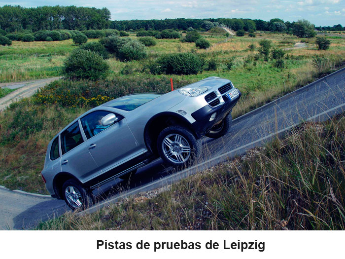 En cuanto al Museo, la pequeña pincelada que ofrecen las fotos es sólo un pálido reflejo de lo que el aficionado va a encontrar allí. Y respecto a las pistas de pruebas de Leipzig, puede estar bien conducir unas vueltas en las de asfalto, pero lo que es realmente un “chute” de adrenalina en vena es que te las dé (ya sea en tu coche, o mejor en uno de demostración, por aquello de que los neumáticos los pagas tú) alguno de los probadores, unos “manitas” que se conocen cada curva de memoria. Conviene estar bien del corazón, porque si no, cuando llegas a la reproducción (ligeramente a escala) del “Sacacorchos” de Laguna Seca, a más de uno tendrían que darle a oler las sales. Y en la zona de todo-terreno, antiguas pistas de entrenamiento para los conductores del Ejército de la antigua Alemania Oriental, aparte de probar las habilidades del Cayenne, se pueden observar ejemplares de una raza bovina rarísima, que talmente parece ser una mezcla del antiguo Uro europeo primitivo con una raza vacuna que se suele ver por Escocia, que es rojiza, peluda y de cuerno retorcido.