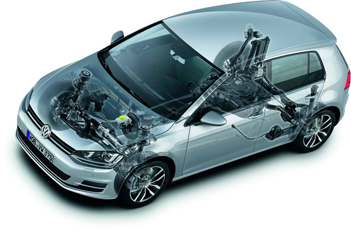 El salto de la sexta a la séptima generación ha sido de los de mayor trascendencia: no sólo cambian la carrocería y el interior, sino las cotas de la plataforma, a la par que la mecánica incorpora los nuevos motores EA-211 de gasolina, y los también renovados EA-288 de gasóleo; en sustitución, respectivamente, de las antiguas familias EA-111 y EA-189. Empezando por la plataforma, su contenido en chapa de acero de alto límite elástico asciende ya al 85%, lo que le permite al monocasco “en blanco” pesar 18 kilos menos que el anterior, siendo más rígido y robusto. Con esto y lo ganado en aligeramiento de otros elementos de bastidor, carrocería y equipamiento, se supone que cualquier integrante de la plataforma MQB debe pesar 40 kilos menos que su antecesor, a similitud de motorización y equipamiento.
