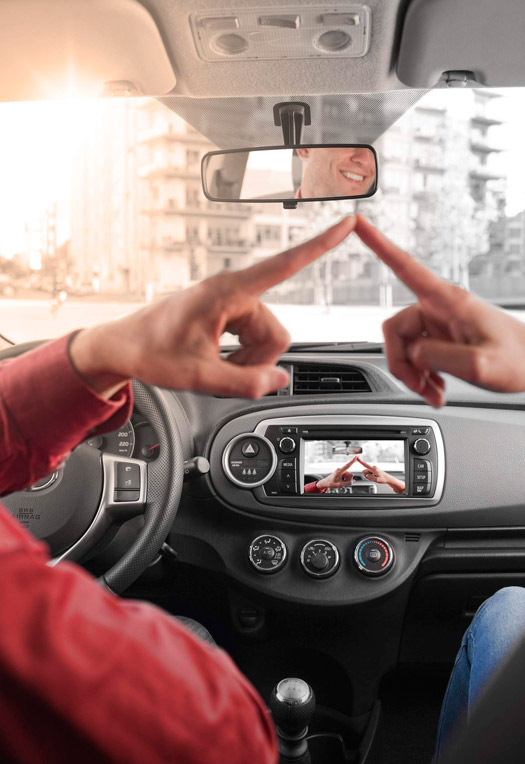 Ahora, hasta los coches hacen “selfies”: conectas tu iPad con cámara al sistema de infotainment, y en la pantalla aparece lo mismo que puedes observar a simple vista; todo un progreso.