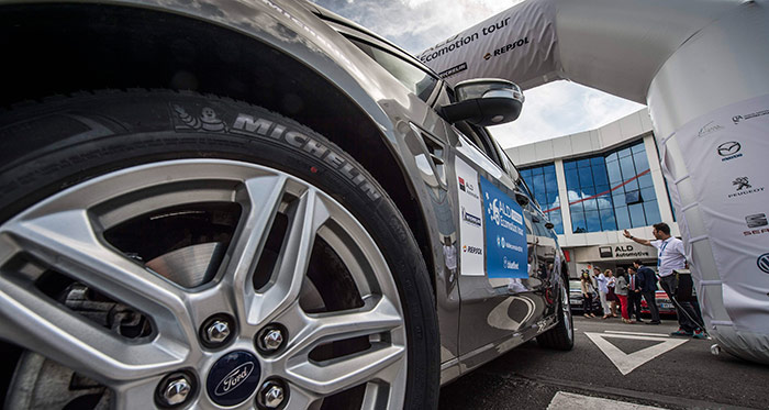Porque sí hubo un coche que resultó beneficiado, y fue precisamente el Ford S-Max vencedor, cuyas pruebas complementarias llevé a efecto el domingo 2 y lunes 4 de Julio. También en esta ocasión fue con una unidad distinta, ya que la vencedora había sido retirada de la circulación (se supone que para pasar al parque de V.O.) debido a que, con cerca de 16.000 km en el contador, ya superaba el kilometraje que habitualmente se respeta en los parques de Pruebas de Prensa o de Comercial/Marketing de la marca. Y es que dicha unidad muy rodada la habían estado reservando específicamente para participar en el Tour; un enfoque muy profesional, que luego rindió sus frutos. Y tanto más cuanto que los neumáticos Conti SportContact-5 que llevaba la nueva unidad que me dejaron (y que deben ser la monta de origen) fueron cambiados en Michelin por unos Primacy Green-X, menos deportivos y adherentes que los Conti, pero también de rodadura más suave.