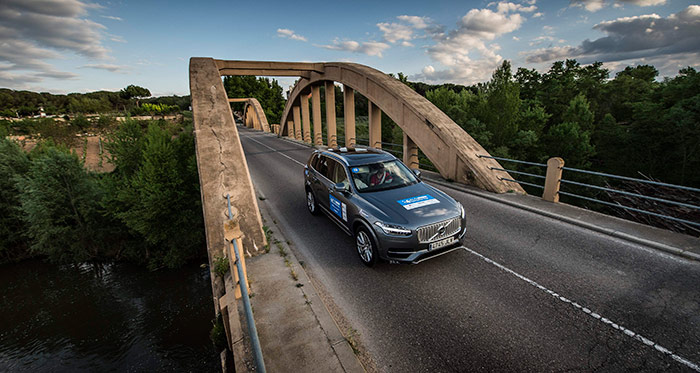 Para compensar lo del S-Max, en esta ocasión el fotógrafo se subió no se sabe donde para enfocar al Volvo desde arriba, a la salida de este peculiar puente de hormigón armado.