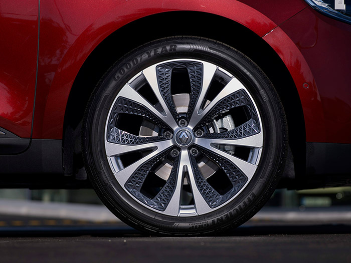 Pero sí que economizamos gracias a los neumáticos, cuyos fabricantes juran (lo mismo que Renault) que le cuestan al comprador exactamente lo mismo que la monta de llanta 17” que llevaba el último Scénic de la 3ª generación; eso ya es ponerse mucho más en razón. Y esta economía viene por dos cauces distintos: el ya señalado de una menor resistencia a la rodadura al ser más estrechos (y también por ser de mayor diámetro), pero también por la mejora aerodinámica que supone esa menor anchura. Aunque los neumáticos no asomen por debajo de la plataforma de un coche ni 20 cm (17 en este caso concreto), su influencia en el Cx es muy importante, puesto que no se están quietos como el resto del vehículo, sino que además van girando, lo cual potencia el efecto de creación de turbulencias. Por ello, disminuir su anchura es un factor nada despreciable, que incluso las marcas reconocen cuando dan homologaciones distintas en función de la anchura de la sección del calzado de las distintas versiones de un coche.