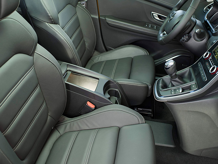 Los reposacabezas con aletas siguen presentes en los asientos posteriores; aunque ligeramente más estrecho, el diseño de la plaza central deja bien claro que el Scénic quiere subrayar su carácter de “5 plazas” de suficiente confort incluso en la más problemática de todas ellas.