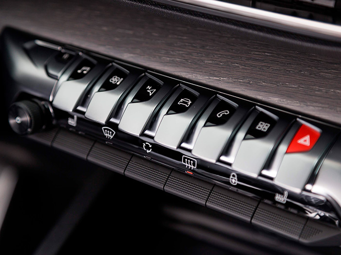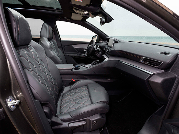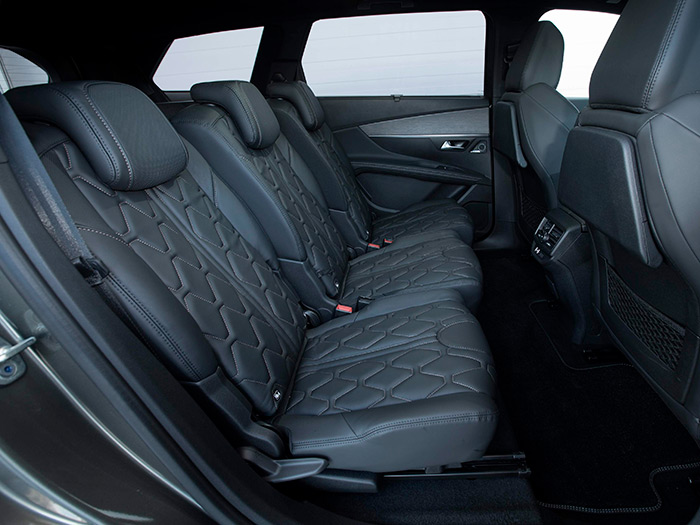 La decisión de mantener las siete plazas heredadas de cuando el 5008 era un MPV (lo sigue siendo, en el fondo) lleva a que las tres de la segunda final sean de regulación y abatimiento independiente, para facilitar el acceso a las dos de apoyo de la tercera fila. Con lo cual se mejora el confort de la plaza central, que es casi idéntica aunque un poco más estrecha que las dos laterales, pero al precio de que éstas sean algo menos confortables que en la tradicional disposición 40/60%; ya que sus refuerzos laterales en banqueta y respaldo ya no puede ser tan generosos, pues ahora la central también lleva los suyos, cuando en diseño 40/60 era prácticamente plana, y con apoyacodos incorporado en el respaldo.