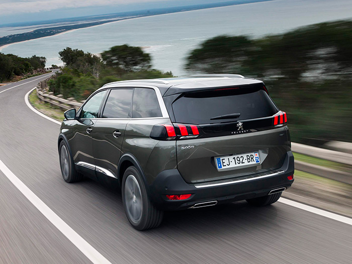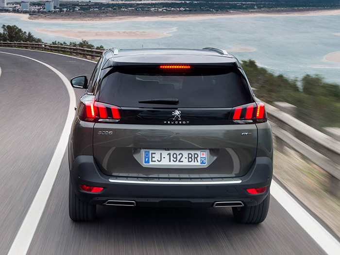 Alto de hombros y con techo plano, la zaga del 5008 transmite una imagen de vehículo “serio” y poderoso.
