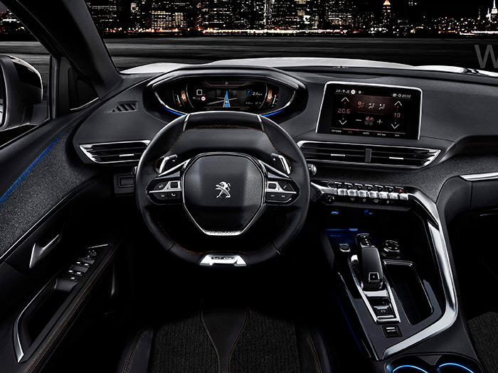 El puesto de conducción, más que moderno, es casi futurista; al ponerse al volante por primera vez se tiene la sensación de estar a los mandos de una nave espacial. Se mantiene la innovación lanzada por Peugeot en el 208 de situar el volante bajo, mientras que la instrumentación se controla mirando por encima suyo. En cuanto a las fotos, todas las disponibles son con cambio automático.