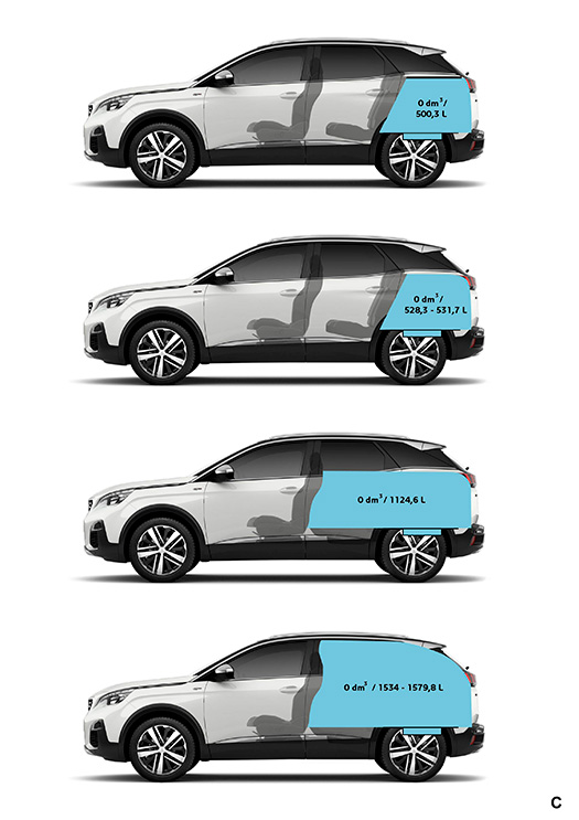 Evolución del espacio de carga en función de la eliminación de la bandeja, del abatimiento de los asientos traseros y de la altura hasta la que se cargue.
