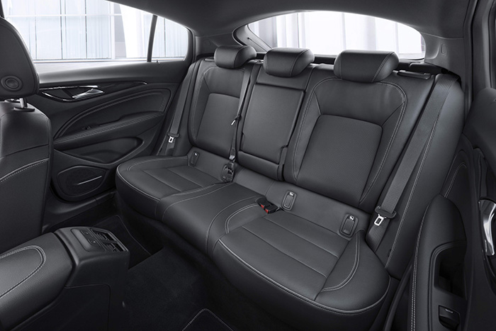 El diseño del asiento posterior deja pocas dudas respecto a que Opel apuesta decididamente por considerar al Insignia como un excelente cuatro plazas, dejando al ocasional ocupante de la quinta en una situación de clara desventaja en cuanto a confort. Obsérvese lo dicho en un pie de foto anterior respecto a la invasión de la consola central y la salida de climatización en la zona para los pies de dicho pasajero.