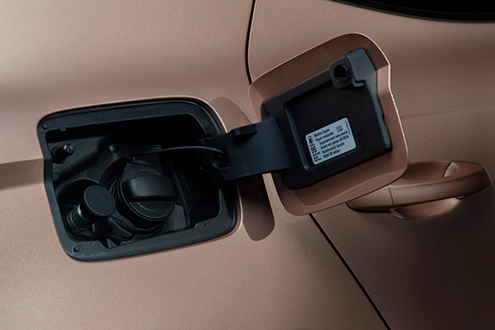 Las dos bocas de llenado se alojan en el mismo hueco que tradicionalmente ocupa la de repostaje de combustible líquido; el pequeño tamaño de la correspondiente al GNC permite que ambas compartan el hueco de tamaño “standard”.