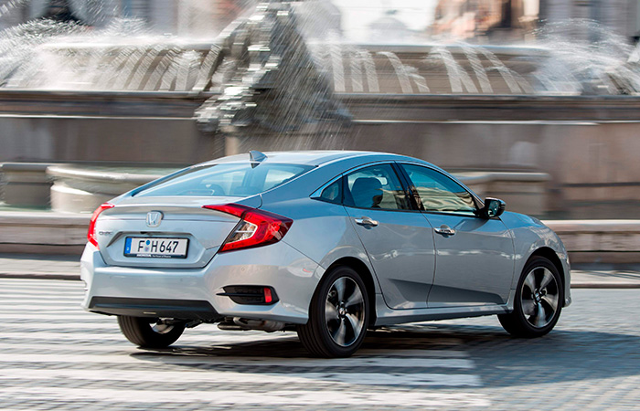 Honda Civic Sedán 1.6-DTEC:Motor: 1.597 cc; 120 CV a 4.000 rpm; 30,6 m.kg a 2.000 rpm. Transmisión: Caja de seis marchas, con 54,8 km/h a 1.000 rpm en 6ª. Neumáticos: 215/50-17 (Bridgestone Turanza ER-33). Cotas: (longitud/anchura/altura): 4,65/1,80 /1,42 metros. Peso (sin conductor, con depósito lleno): 1.314/1.366 kg. Velocidad máxima: 201 km/h. Consumo extra-urbano: 3,4 l/100 km. Emisión ponderada de CO2: 91 g/km. |