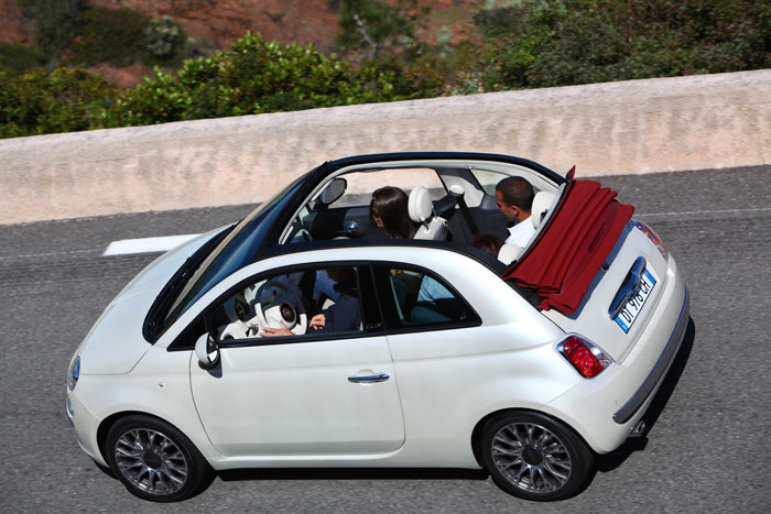 Pero aquí hablamos de coches serios, dentro de su pequeñez, como es el caso del comercialmente exitoso 500 de Fiat, cuya nueva y más potente versión del pequeño turbodiesel de litro y cuarto hemos probado sobre la carrocería con techo retráctil de lona, ya que en el 500 berlina no llegará hasta el otoño. Puesto que, con motivo de su presentación, en Fiat juraban y perjuraban que los dos tienen exactamente la misma aerodinámica, ya que la forma exterior es idéntica y el techo queda muy tenso y no flanea (lo cual es rigurosamente cierto), no me preocupó en absoluto probar esta variante.