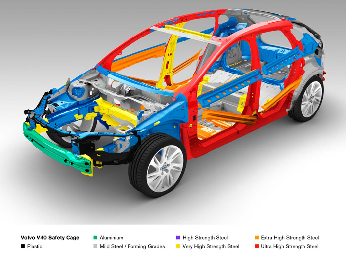 Nada menos que cinco niveles de dureza en la chapa del V40; en el V60, pese a lo que diga la tapa de plástico, lo que hay bajo el capó pertenece en exclusiva a la mecánica turbodiesel.