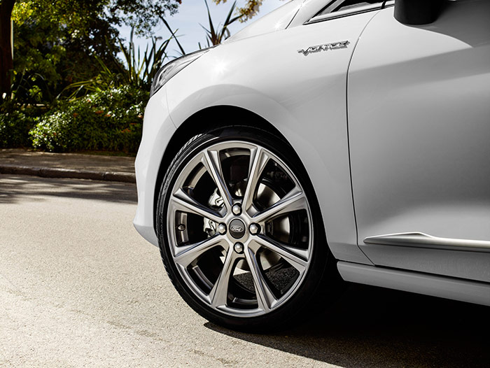 Con una descomunal Pirelli P-Zero 205/40-18, aquí tenemos otro diseño de llanta distinto en un acabado Vignale, aunque el calzado sea el mismo que en el coche rojo (que es un ST-Line 2017). Después de haber “quemado” el prestigio del carrocero italiano Ghia a lo largo de varias décadas, ahora Ford parece que va a hacer lo mismo con Vignale, otro artista mítico del mismo origen, cuyo nombre también es propiedad de Ford.