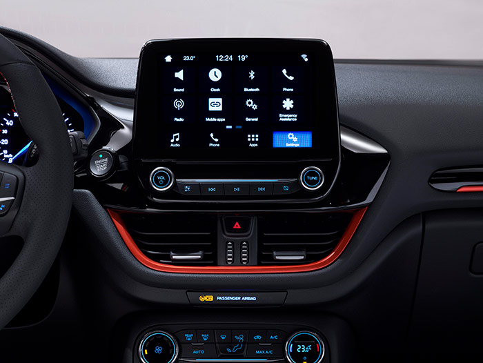 En el Nuevo Fiesta 2017, la pantalla adquiere un protagonismo que difumina todos los demás elementos que integran el salpicadero.