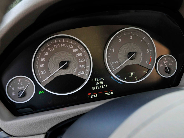 Una pequeña estadística entre coches de similar nivel de prestaciones nos permite observar que, entre cinco turbodiésel, la diferencia de tiempos entre “consumo” e “interesante” se cifra en 11,4 minutos; y entre cuatro de gasolina, en 10,25 minutos. En promedio 11 minutos, frente a los 10 que hemos encontrado para el 320 ED; de haber tenido éste idénticas condiciones que durante el recorrido económico, en el “interesante” hubiese hecho un tiempo de 4h 27m, o incluso un minuto menos. Pero, en cualquier caso, está claro que su capacidad velocística, sin despeinarse en cuanto a conducción (cambiando a 2.500 rpm, ya lo hemos dicho), es de primer orden. Porque si bueno es el resultado, tanto en consumo como tiempo para el recorrido económico, todavía resulta más asombroso el consumo al ritmo más vivo.