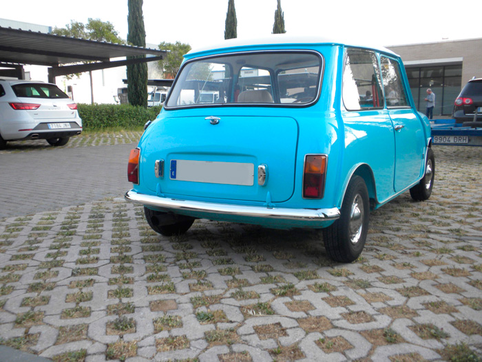 El clásico Mini ADO-20, ya con las bisagras por dentro de la puerta. Como lleva componentes de 850, 1000, 1000-E, diversos Cooper y material especial de preparación, resulta difícil darle una denominación concreta. Digamos que es una especie de Mini Cooper 1000, con aditamentos.