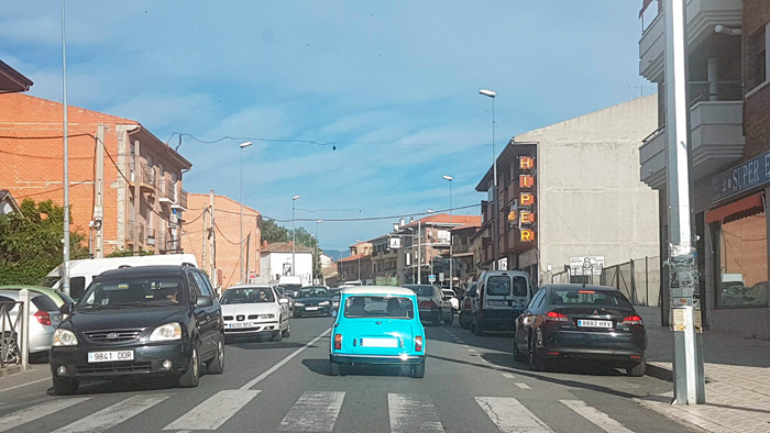 Otro detalle concreto que le frena mucho a este coche son las travesías en las que hay “guardias dormidos”; con las ruedas de 10” hay que pasarlos muy, pero que muy despacio, porque son como subirse a un bordillo con una rueda moderna. Y en total, nuestro itinerario tiene 15 travesías (casi todas ellas con ese tipo de obstáculo); y 20 rotondas, que también frenan lo suyo respecto a los tiempos iniciales de esta prueba, incluso en los primeros años de las realizadas para “km77”.