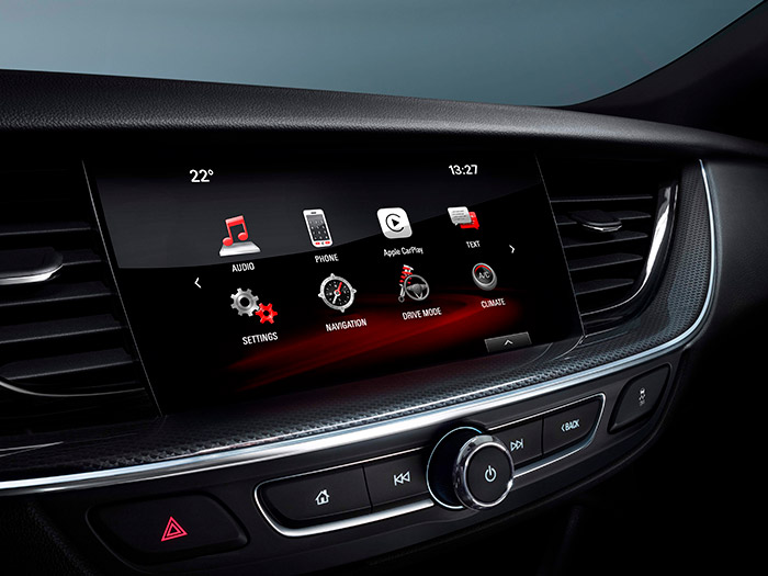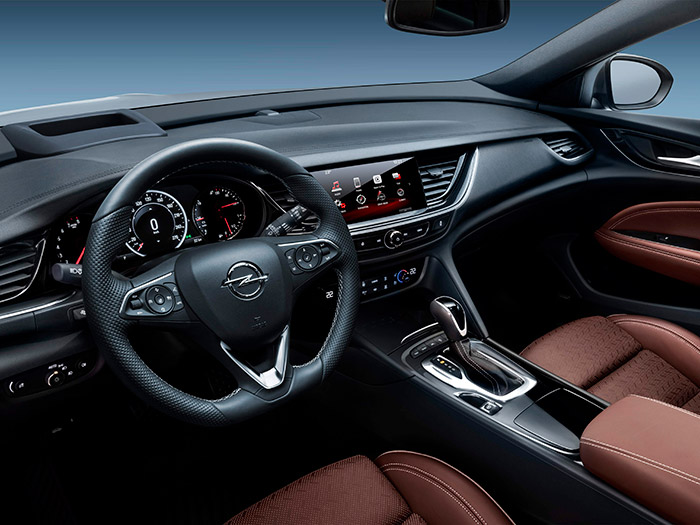 El frontal, aunque sigue siendo típicamente Opel, está más estilizado que en el anterior Insignia. Se incorpora un detalle dudoso del más moderno diseño, consistente en que no hay parachoques en el estricto sentido del término, ya que todo el frontal está cortado prácticamente en vertical; y si topas contra una pared acabas averiando simultáneamente, aunque sea poco, tres o cuatro zonas de la carrocería.