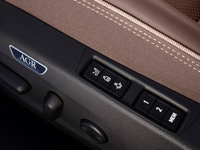 El asiento opcional AGR tiene cantidad de reglajes, y muy en especial el de anchura de las aletas laterales, tanto en la banqueta como en el respaldo; esto permite adaptarlo a ocupantes de todo tipo de corpulencia. También tiene otro reglaje más común, el de longitud de la banqueta. Y de cara al confort, tanto ventilación como calefacción.