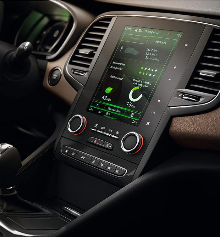 La pantalla dispone de generosas dimensiones y múltiples presentaciones. El aspecto negativo es que, para respetar el limpio diseño de la repisa del salpicadero, queda desviada hacia abajo y a la derecha respecto al conductor, obligando a desviar la vista de la carretera.