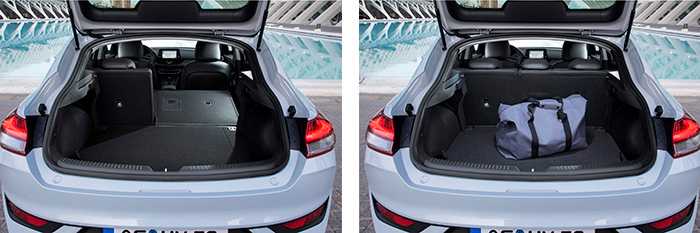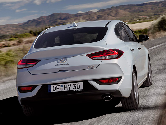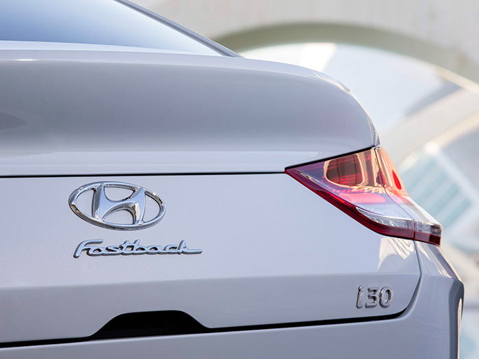 El tratamiento de la zaga, y no sólo de su perfil, es muy distinto entre estas dos versiones del i30. Tanto los grupos ópticos como la zona para la matrícula son muy distintos; y como la cota vertical de la luneta es bastante más grande en el Hatchback, su zona de chapa queda más comprimida, con una boca de carga más amplia para el maletero, mientras que el alerón incorporado al portón en el Fastback es mucho pronunciado que el que lleva el Hatchback al final del techo.