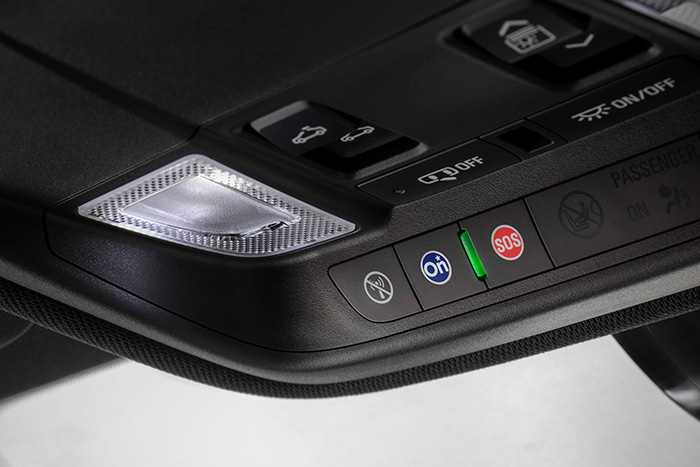 Como ya viene siendo cada vez más habitual, la zona del techo donde antes iba exclusivamente el espejo retrovisor, se ha ido convirtiendo en una consola superior con múltiples mandos y pulsadores. Tiene la ventaja de ser accesible también para el pasajero, sin molestar al conductor.