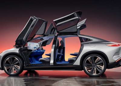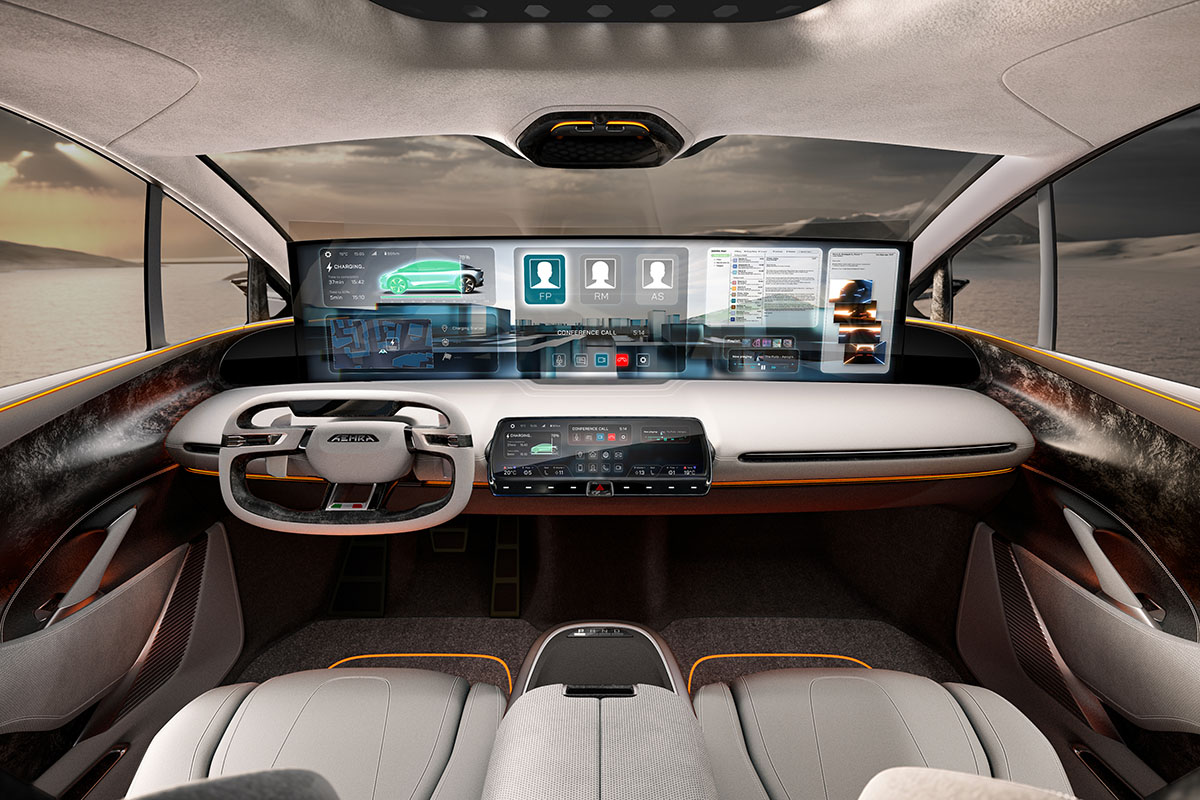 Uno de los aspectos más interesantes que conocemos del AEHRA SUV, es que su diseño exterior —claramente futurista y dibujado bajo la dirección de Filippo Perini, que ha trabajado en marcas como Alfa Romeo, Audi o Lamborghini— está pensado para maximizar el espacio para los ocupantes.