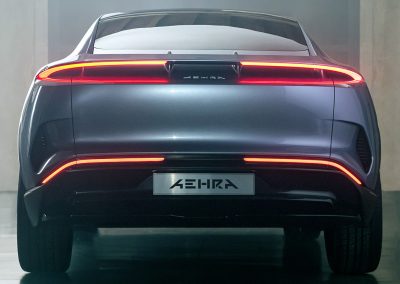 AEHRA es una nueva marca de vehículos eléctricos (su sede está en Milán) y su primer producto será un SUV. La intención de la marca es ponerlo en el mercado a finales de 2025. Su precio rondará los 160 000 euros. El segundo modelo será una berlina, de la que todavía no hay imágenes.