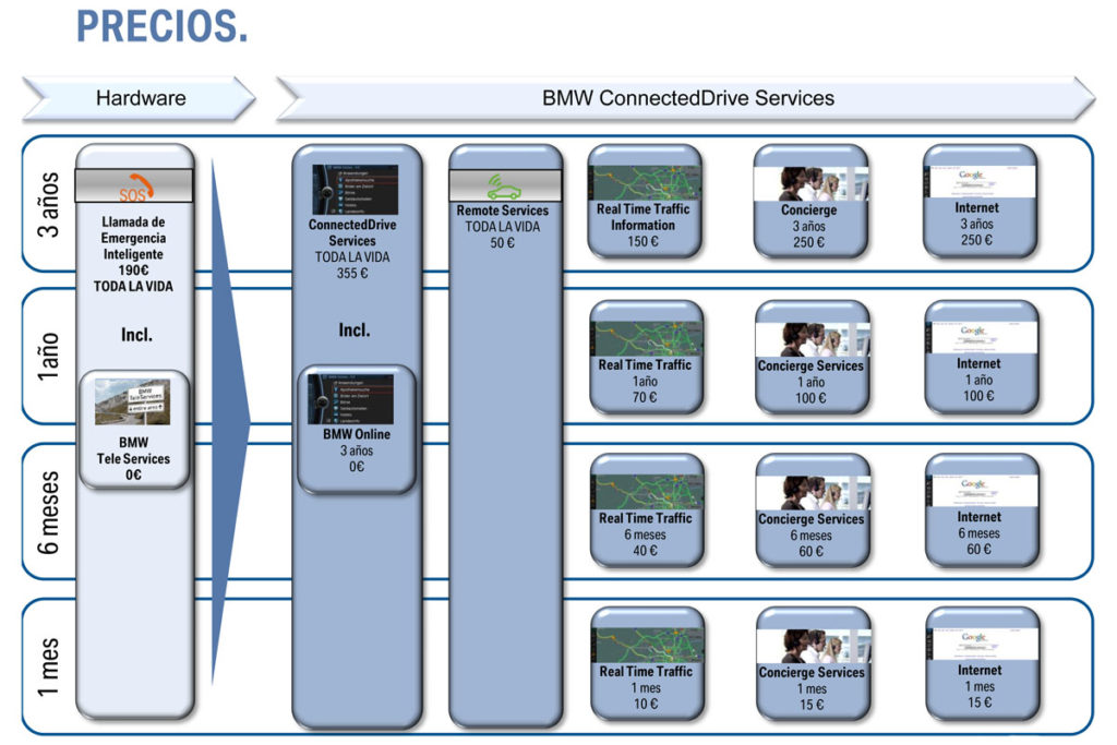 Teóricamente desde la Web de Mi BMW ConnectedDrive debería tener acceso a una tienda online desde la que podría contratar todos los servicios relacionados con este sistema.