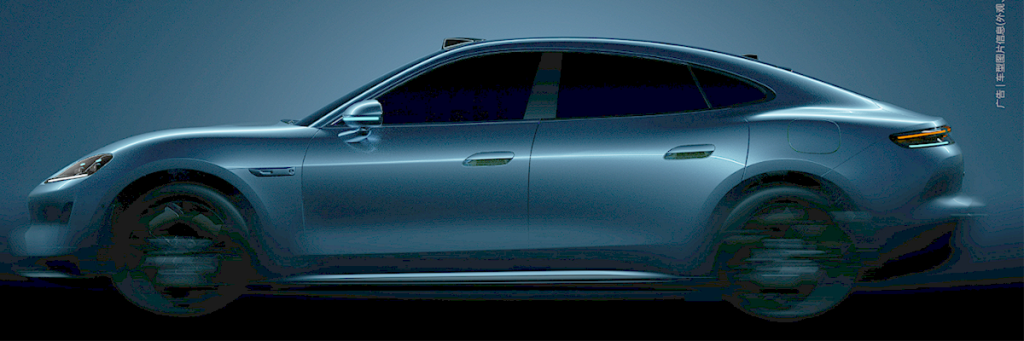 Estas dos imágenes son del recién mostrado SAIC Z7. Como la primera está intencionadamente oscura, la hemos aclarado un poco. Con esa segunda imagen ya se puede empezar a sospechar que el parecido con el Taycan no es solo casual.