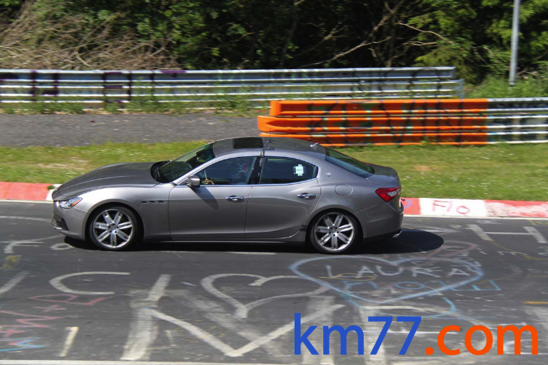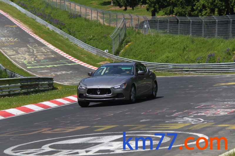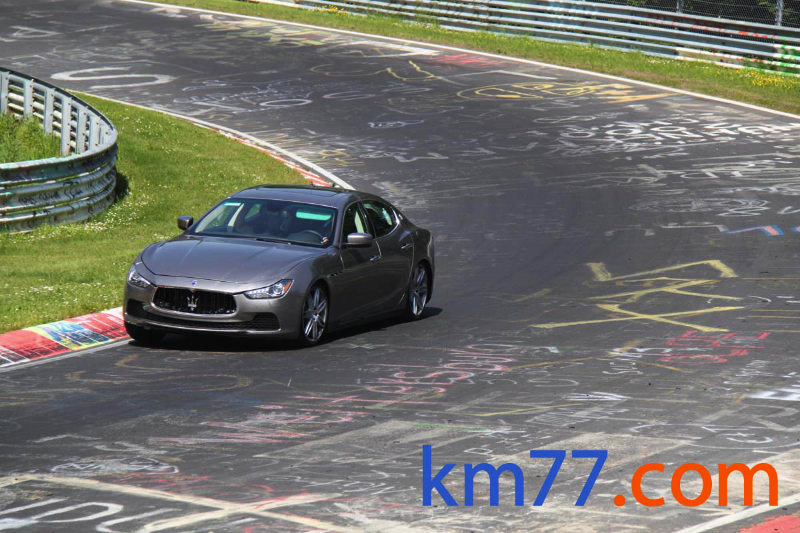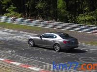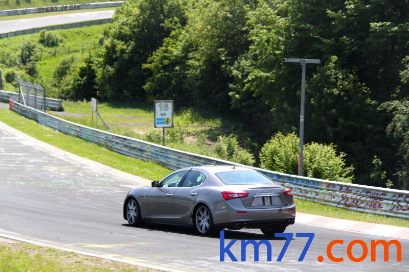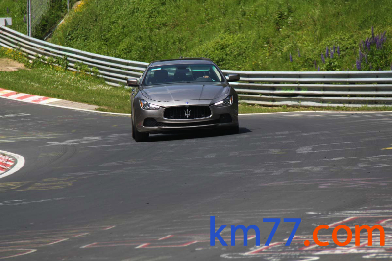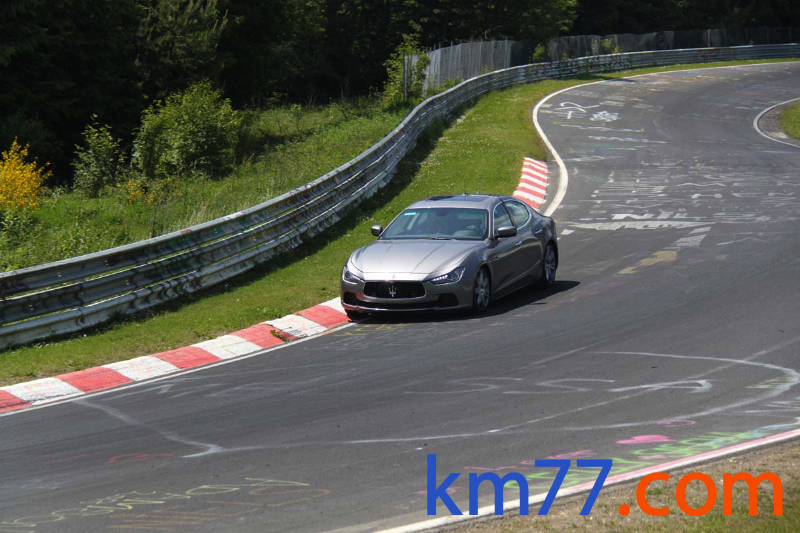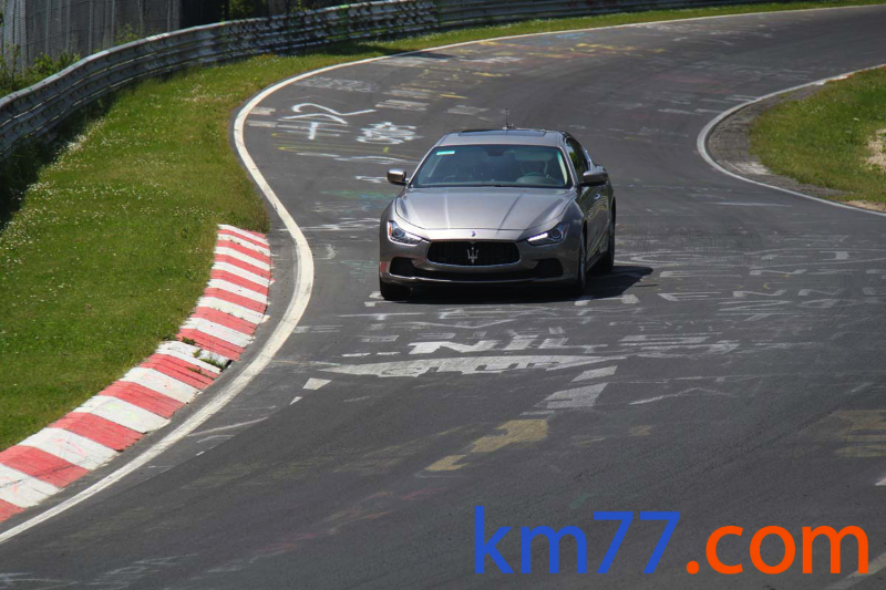 Durante nuestro viaje con el Clio de la prueba de larga duración pudimos ver una unidad del Ghibli dando vueltas al trazado alemán de Nürburgring Nordschleife.