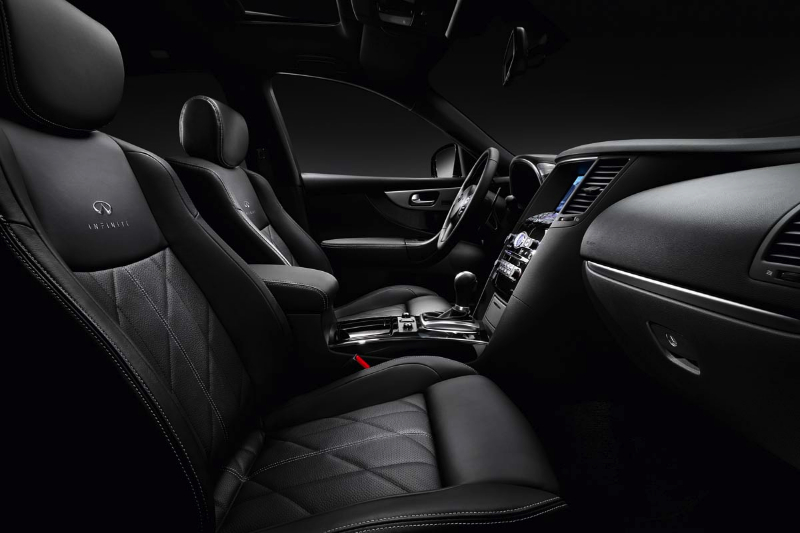 El «FX Black & White» está basado en el nivel de equipamiento «S Premium». Está equipado de serie con faros de doble xenón, climatizador de doble zona; «Connectiviti+ System»: sistema de navegación de 30Gb de disco duro incluyendo Guía Michelin, pantalla táctil con «Infiniti Controller» —mandos situados delante de la pantalla—, lector de Cd/Dvd compatible con MP3 e «Infiniti Music Box» de 10Gb con base de datos musical «Gracenote», Bluetooth —para teléfono y conexiones de audio— y reconocimiento por voz; equipo de sonido «Bose Premium Sound System»; cámara de visión periférica 360° «AVM» (Around View Monitor); control de velocidad adaptativo «ICC» (Intelligent Cruise Control); suspensión regulable «CDC» (Continuous Damping Control) o dirección trasera activa «RAS» (Rear Active Steering), entre otros elementos.