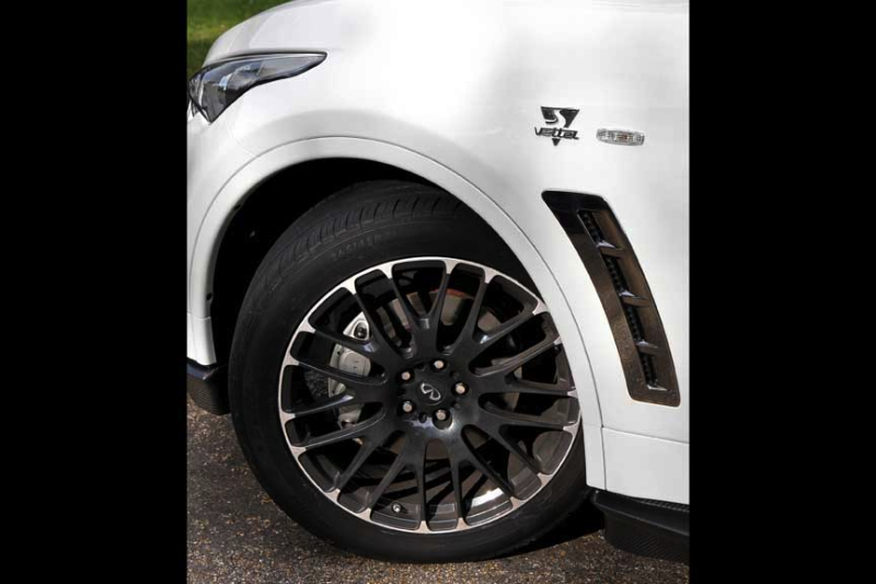 El «Fx Vettel Edition» está diseñado por Shiro Nakamura. El paragolpes delantero tiene un nuevo diseño incorporando dos tiras de diodos luminosos que hacen la función de luz diurna. El color blanco «Moonlight White» contrasta con la fibra de carbono empleada en el spoiler inferior del paragolpes delantero —según Infiniti está basado en el alerón del F1 de Red Bull Racing—, en la parrilla delantera, en los retrovisores, en el alerón superior del techo —que es opcional— y en el difusor trasero —la luz antiniebla es de diodos luminosos y simula la luz que tienen los monoplazas—.