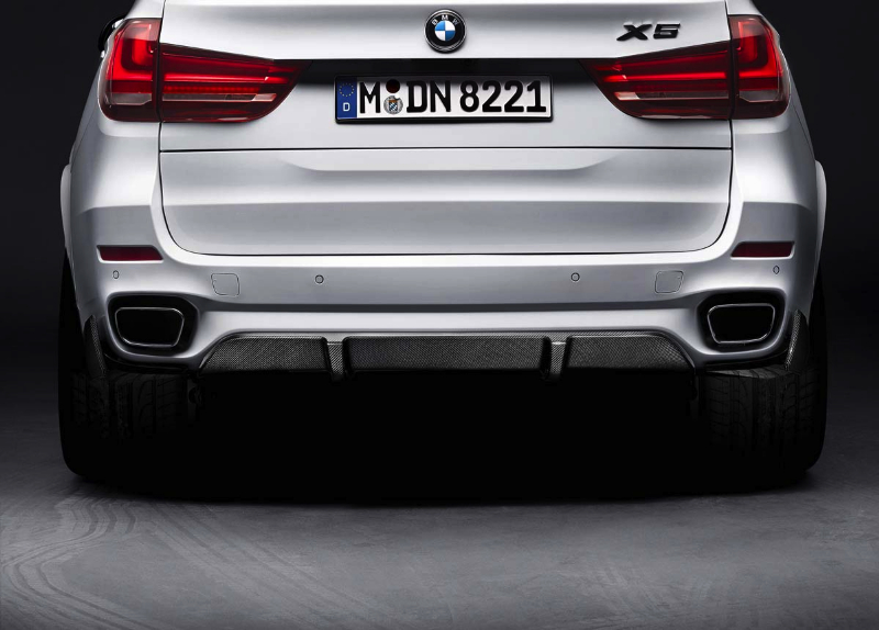 El «Pack M Performance» dota al todoterreno de un aspecto más deportivo, con un paragolpes delantero específico con un añadido inferior fabricado en fibra de carbono. Este material también está presente en las carcasas de los retrovisores y en el difusor trasero.