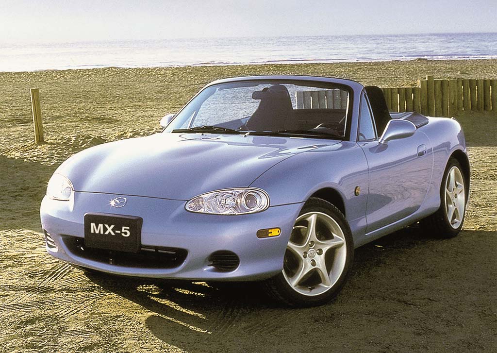 En 1989, durante la celebración del Salón de Chicago tuvo lugar la presentación del primer MX-5. Su denominación procede del nombre «Mazda experimental 5», empleado en Irvine durante su desarrollo. Un vehículo que tenía un motor de cuatro cilindros situado ligeramente por detrás del eje delantero, tenía una cilindrada de 1,6 litros con una potencia máxima de 115 CV. Era un coche muy ligero, solo pesaba 955 kilogramos.