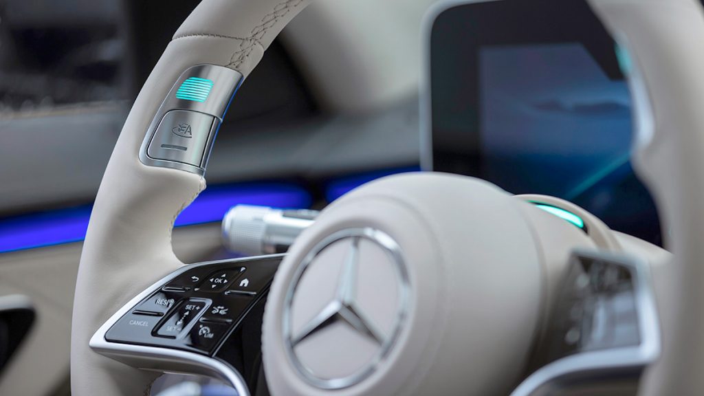 Según Mercedes, «En los tramos de autopista adecuados y en los que la densidad de tráfico es elevada, el DRIVE PILOT puede ofrecer la posibilidad de asumir la conducción, inicialmente hasta la velocidad legalmente permitida de 60 km/h. Los mandos necesarios para activarlo se encuentran en el aro del volante, a la izquierda y a la derecha, sobre los huecos para los pulgares. Cuando el conductor activa el DRIVE PILOT, el sistema controla la velocidad y la distancia, y guía el vehículo sin esfuerzo dentro de su carril. El perfil de la ruta, los acontecimientos que se producen en ella y las señales de tráfico se tienen en cuenta de forma correspondiente. El sistema también reacciona ante situaciones de tráfico inesperadas y las gestiona de forma autónoma, por ejemplo, mediante maniobras de evasión dentro del carril o maniobras de frenado».
