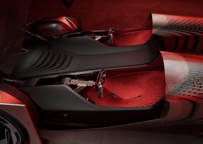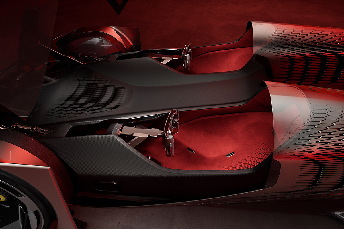 El habitáculo está compuesto por dos cabinas independientes equipadas con tecnología drive-by-wire, que «sincroniza todos los elementos de control —desde el volante hasta los pedales— y permite a ambos ocupantes experimentar y compartir sensaciones en tiempo real».