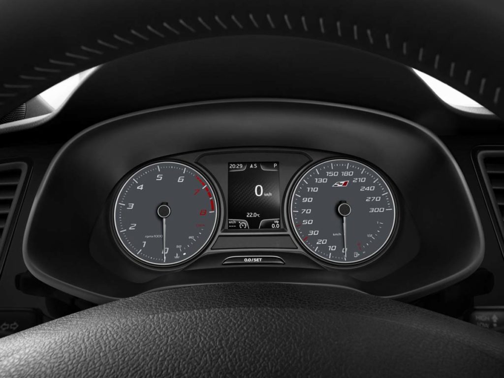 En el interior, las imágenes filtradas no permiten ver cómo será el diseño de los asientos. La anterior generación del León Cupra, tuvo unos asientos deportivos de una sola pieza (imagen). La tapicería podrá ser de cuero combinando dos colores. La mayor diferencia la encontramos en el volante, con la parte inferior achatada y el logotipo Cupra, y en el cuadro de instrumentos.