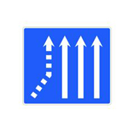 S-72a: Indica, en una calzada con tres carriles de circulación en el mismo sentido, que se producirá la confluencia de un carril por el lado izquierdo.