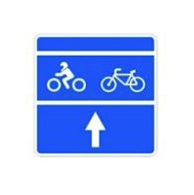 S-65b: Indica, en calzadas de doble sentido de circulación, que el carril sobre el que está situada la señal está reservado a la circulación de ciclos, quedando prohibida su utilización a los demás usuarios de la vía.