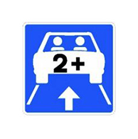 S-51b: Indica uno o varios carriles destinados exclusivamente a la circulación de vehículos con alta ocupación. En la imagen figura el número de personas a partir de las cuales se considera alta ocupación