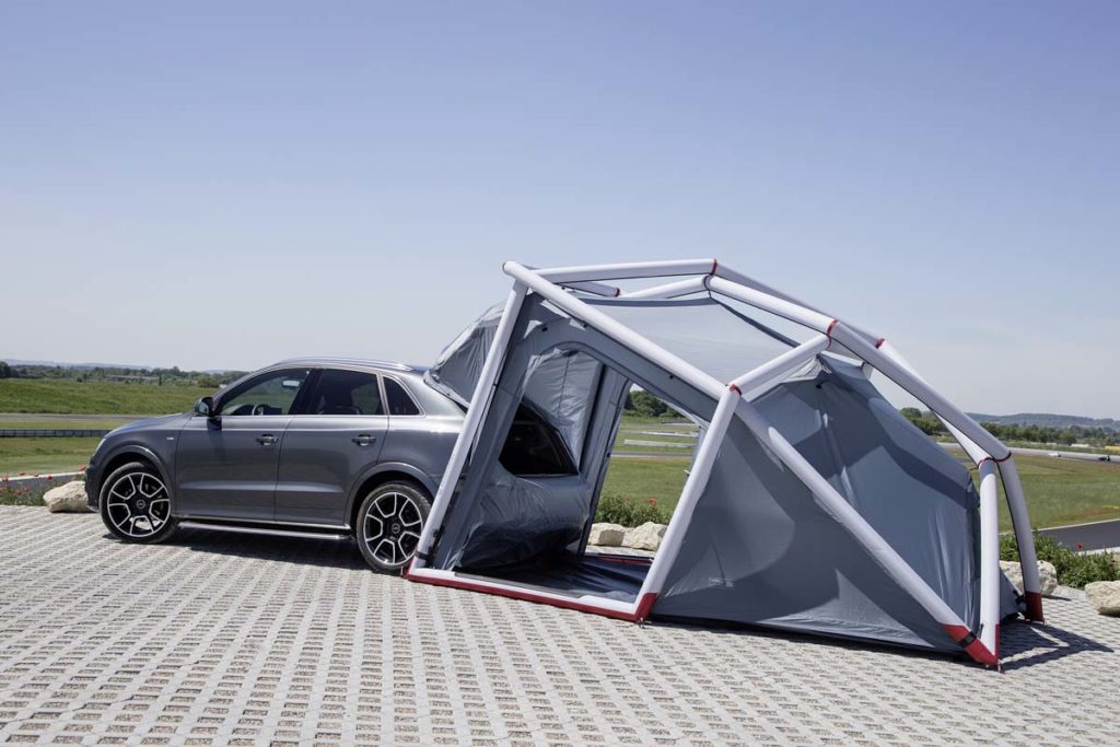 Para este modelo, Audi también ha diseñado una tienda de campaña. Según informa la marca, el proceso de montaje desde que se extrae de la bolsa —que se adapta al maletero del Q3— es de 7 minutos. Una vez anclada la tienda, es capaz de resistir viento de hasta 70 km/h. El usuario opcionalmente podrá aparcar su Q3 junto al porche de la tienda e incluso, abrir el portón sin problemas.