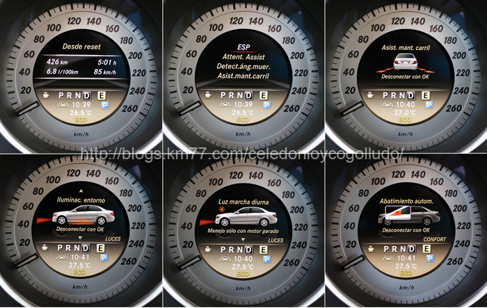 Entre las novedades del Clase C de 2010 está la pantalla del cuadro de instrumentos, en el interior del velocímetro. Antes era monocroma y ha sido reemplazada por una en colorines y con mayor definición, como la que tienen los hermanos mayores del Clase C.