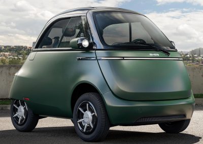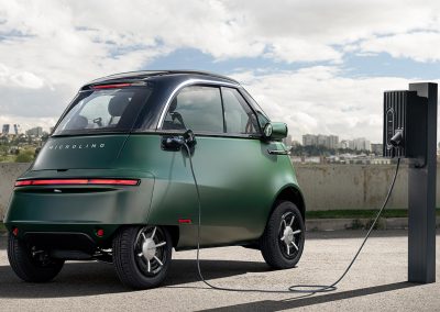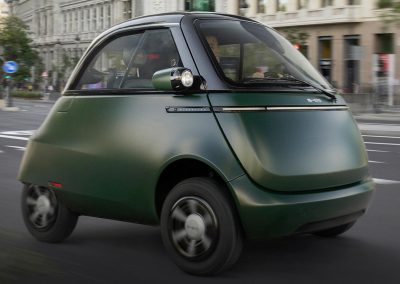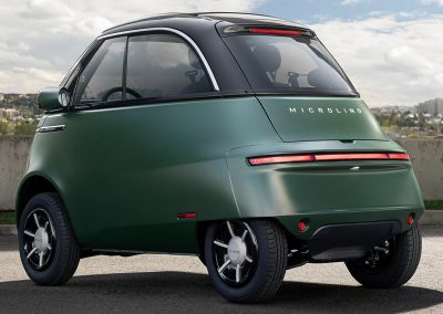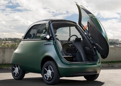El Microlino es un coche pensado para el ámbito urbano y sus prestaciones dan buena prueba de ello: puede acelerar de 0 a 50 km/h en 5 segundos y alcanzar los 90 km/h. El tamaño de su carrocería también es el ideal para este tipo de entornos —2,52 metros de largo, 1,47 m de ancho y 1,50 m de alto— y es muy parecido al de otros cuadriciclos eléctricos biplaza como el XEV Yoyo o el e.Go e.wave.X. No obstante, hay un detalle que distingue al Microlino de estos dos modelos (y también de todos los vehículos a la venta en la actualidad): el acceso al habitáculo se hace a través de una única puerta de apertura frontal (imagen), en lugar de las habituales laterales (en esto también se parece al Iso Isetta, con idéntico acceso).