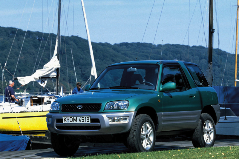 La primera generación estaba basada en el prototipo RAV-FOUR presentado en el Salón del Automóvil de Tokio, en el año 1989. En marzo de 1991 se dio luz verde al proyecto y empezó el desarrollo del primer RAV4. Después de muchas dificultades (el proyecto no contaba con todo el apoyo necesario en Toyota), esta generación comenzó su andadura comercial en el año 1994. Un modelo con tres puertas y tracción total permanente. Dos años más tarde presentaron la versión con cinco puertas y tracción delantera así como una versión descapotable con carrocería de tres puertas.