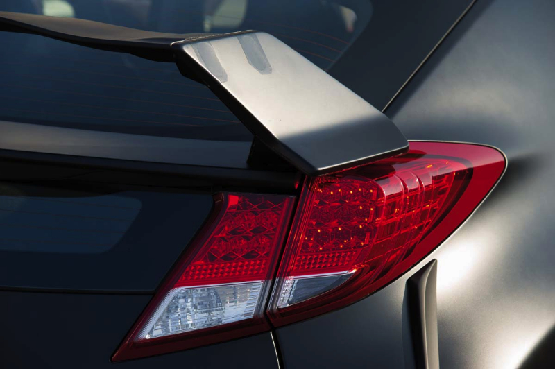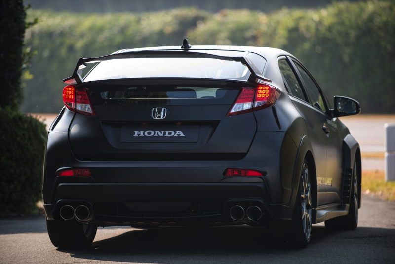 La primera vez que Honda mostró el Civic Type R tenía cierto camuflaje (galería de imágenes). En esta ocasión, la carrocería está pintada en negro mate, mostrando un aspecto más cercano al que tendrá el modelo de producción.