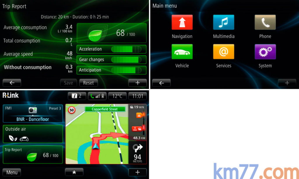 Además, el sistema «R-Link» tiene una función —llamada «Renault R-Sound Effect»— para elegir el sonido del motor que se quiere escuchar por los altavoces del coche. Hay seis, como ejemplos Renault habla de un motor deportivo, del sonido de un coche futurista o de una motocicleta.